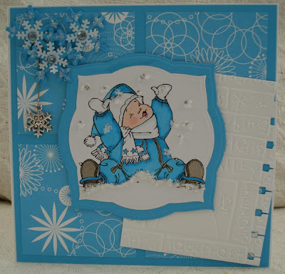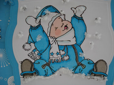 Hi Hun...this is sooooo gorgeous! That baby is adorable...I must say that MO is a very talented lady! Love her artwork! LOve your colouring, and your snow is fab...at least you won't get frostbite getting it back in the jar! I'd sure you did...but when I'm working with something like this, I work on top of a folded piece of paper..then its a bit easier to get most back in the pot!! bx